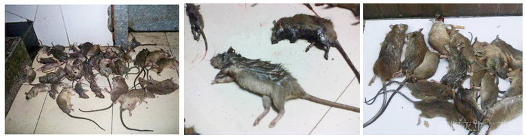 二、化學滅鼠:化學滅鼠是指使用有毒化合物殺滅鼠類的方法。這樣是滅鼠公司常用的方式之一,主要針對非食品企業;化學滅鼠包括胃毒劑、薰殺劑、驅避劑和絕育劑等。化學滅鼠的優點是投放簡單、工效高、滅效好、見效快。化學滅鼠是目前大面積控制鼠害猖獗普遍使用的一種滅鼠方法。在化學滅鼠過程中主要使用抗凝血性慢性殺鼠劑。抗凝血殺鼠劑的優點主要為:一是安全,因慢性殺鼠劑作用緩慢,一般取食后3-4天才發病,人畜一旦誤食中毒,搶救的余地大,并有特效解毒維生素K1。二是高效,由于慢性殺鼠劑作用慢,主要破壞抗凝血功能,造成大出血而死,這樣老鼠因中毒而死得很平穩,不會引起其它老鼠恐懼而拒食,從個體看老鼠死得慢一些,但從整體看死得多一些,可獲得較好的滅鼠效果。三是適口性好,這類鼠藥毒力強,在毒餌中含量極低,不會影響老鼠的適口性。四是符合鼠的生態行為。五是成本低。抗凝血殺鼠劑在毒餌中含量小,成本低,農民較易接受。品種主要有溴敵隆、大隆、殺鼠迷、殺鼠靈、敵鼠鈉鹽、殺它仗等。此類藥劑對人畜安全,不易產生二次中毒, 老鼠中毒時間慢,一般3天出現中毒疹狀,5-7天為死鼠的高峰期,滅鼠效果十分顯著。